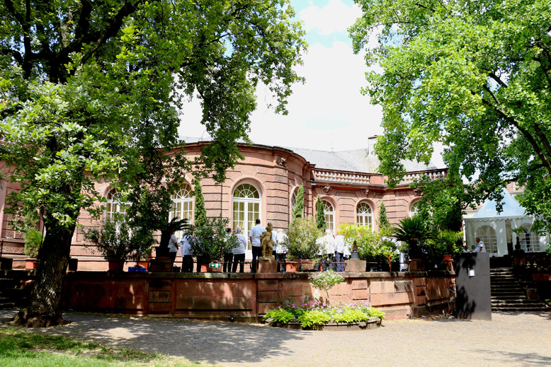 Chuchichef Hans heißt unsere Brüder, Oberbürgermeister Michael Kissel, Gäste und Sponsoren im Schloss Herrnsheim nochmals willkommen. Die Kochbrüder der Chuchinen bereiten bereits unser Festmahl zu und richten hier später an – fast unbemerkt, da im eigenen Zelt und v. a. geräuscharm, bestens vorbereitet durch Probekochen, perfekte Aufgabenverteilung und Zusammenspiel – so gelingt Kochen auf hohem Niveau für eine so zahlreiche Gesellschaft und so entsteht, trotz allem angenehmer Stress, wahrlich Brüderlichkeit – Dank an alle beteiligte Kochbrüder.